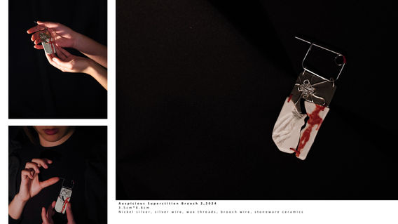 Auspicious Superstition is a series of wearable jewellery pieces reflecting my exploration of the idea of “luck” during my 本命年 (birth year). In Chinese folk belief, this year, which occurs every twelve years, can be challenging as its astrological energy is thought to conflict with one’s zodiac sign. As someone born in the Year of the Dragon, I became acutely aware of this idea throughout the year.